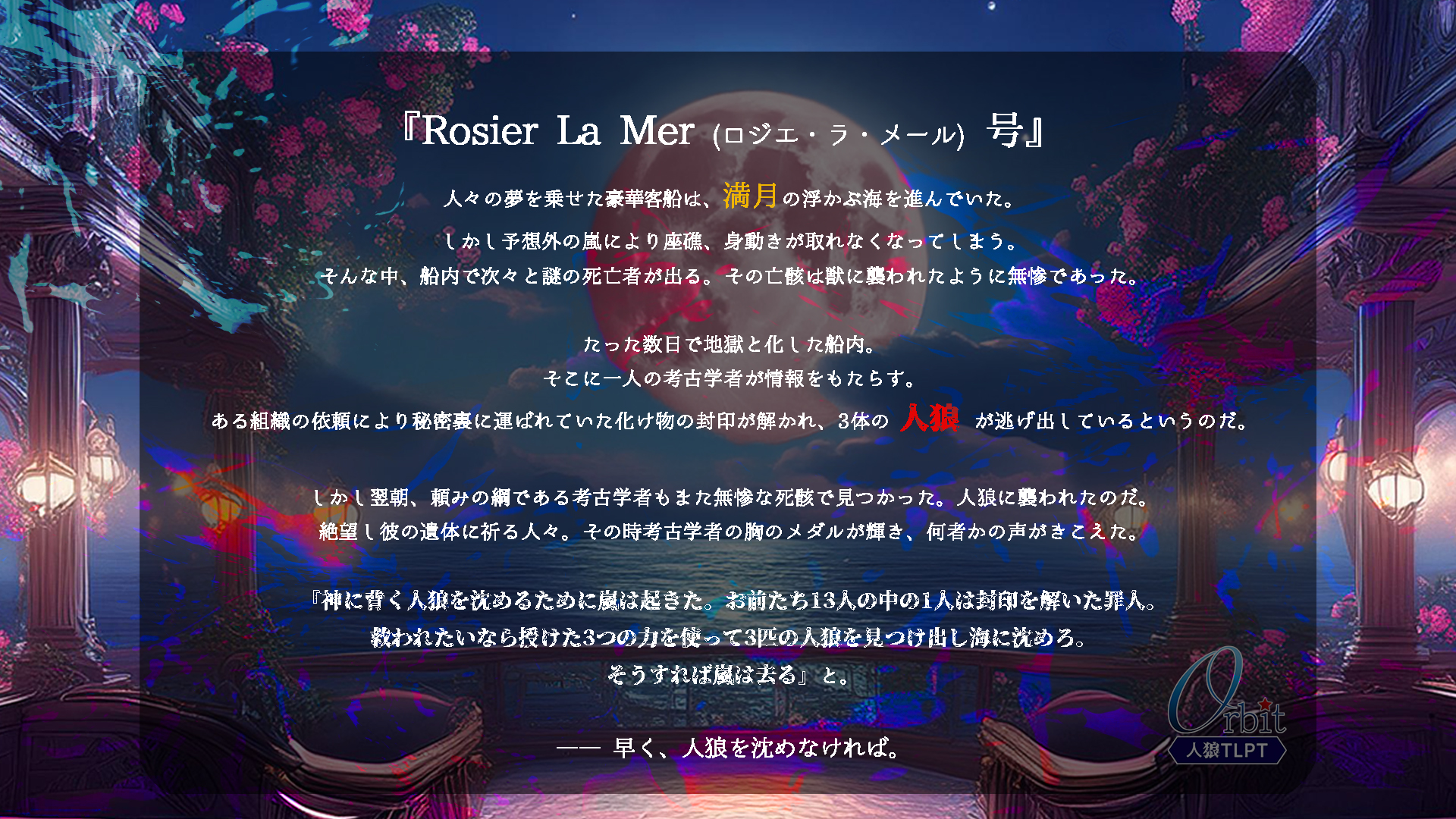 人狼TLPT O(オービット)シリーズのキャラクターや公演内容をご覧いただけます。